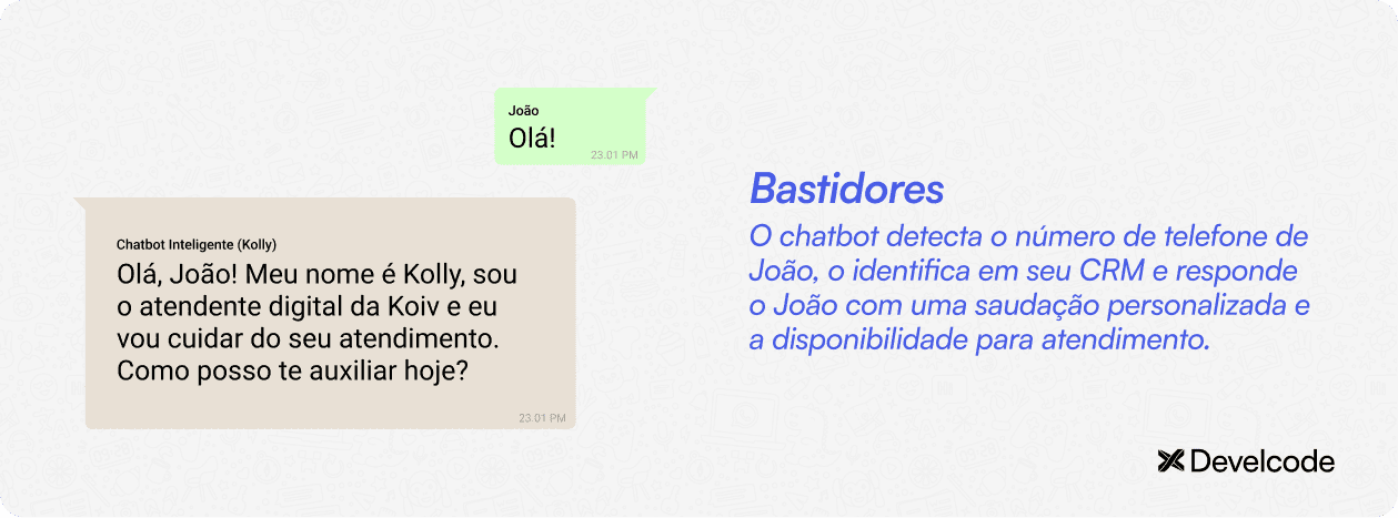 Veja abaixo a interação entre o João e o chatbot inteligente da empresa através do WhatsApp.